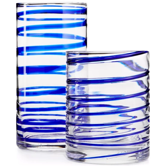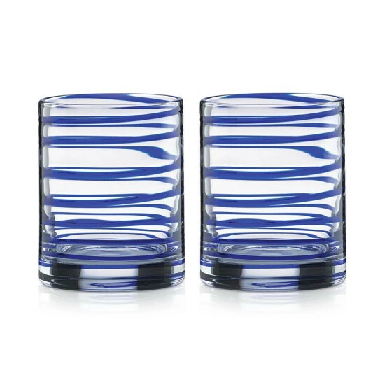 A cobalt blue spiral adds a fun twist to the Charlotte Street double old-fashioned glasses by kate spade new york.