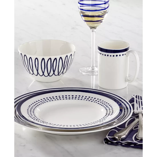 Bring a versatile pop of color to entertaining with the cobalt blue swirls through the glassware from kate spade new york’s Charlotte Street Collection.