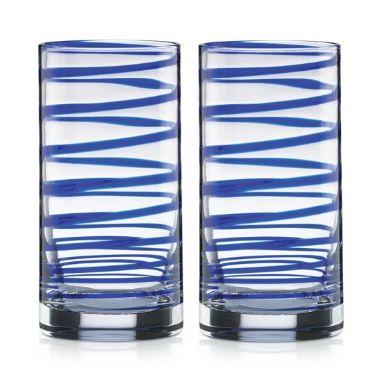 Add a fun twist to your cocktails with the cobalt blue spiral on kate spade new york’s Charlotte Street highball glasses.
