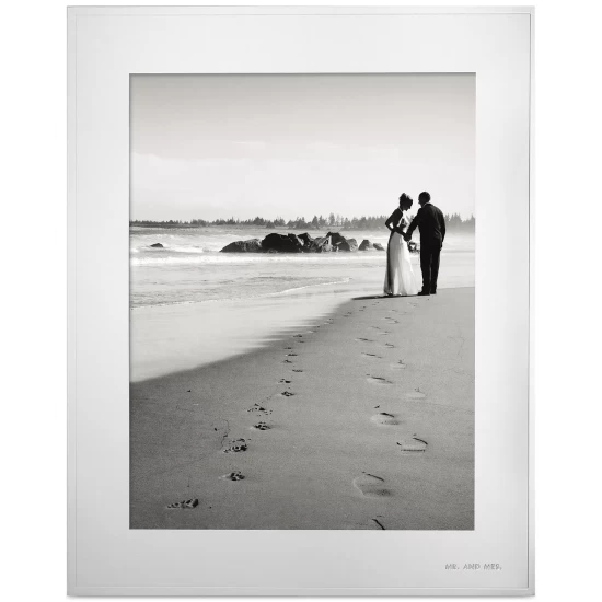 Polished to a lustrous mirror-like finish, this elegant and simple frame is crafted in silver-plated metal, making your most magical moments shine even more. With “Mr. & Mrs.” engraved in the bottom right corner.