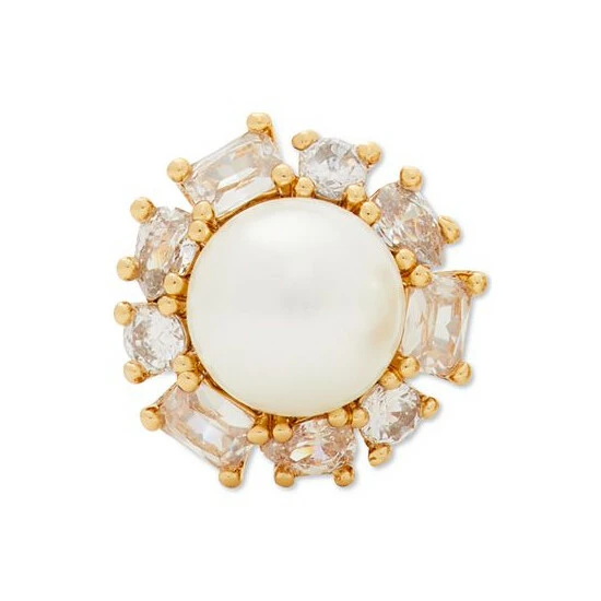 A halo of colors surrounds a polished imitation pearl on Kate Spade New York’s Candy Shop stud earrings.