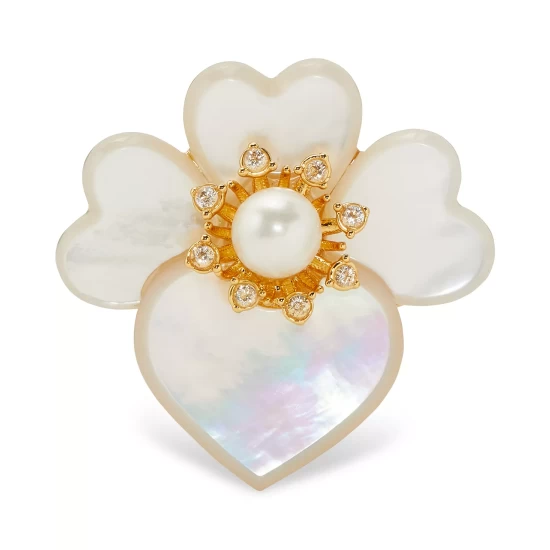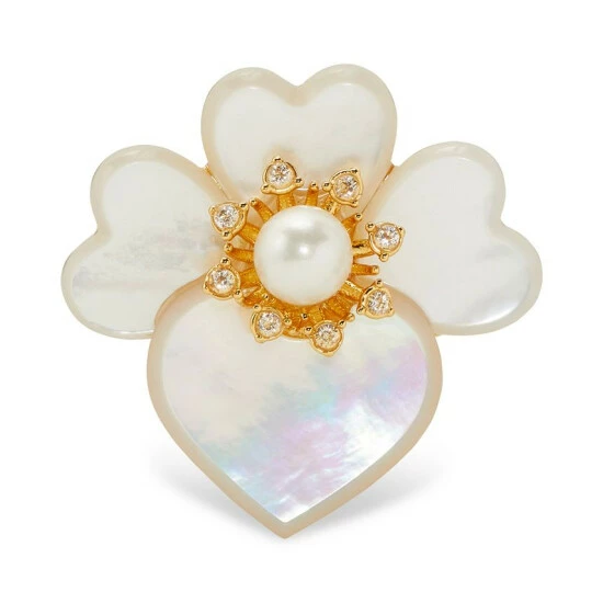 - Set in gold-tone mixed metal; cubic zirconia; acrylic; mop
