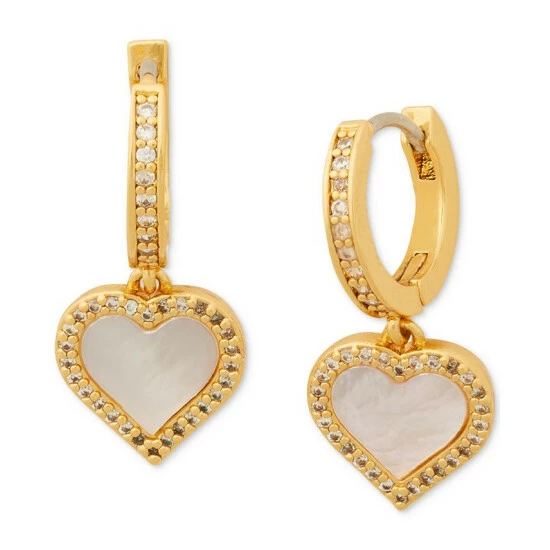 Serene mother-of-pearl fills the heart silhouettes of these sparkling, golden earrings from Kate Spade New York.