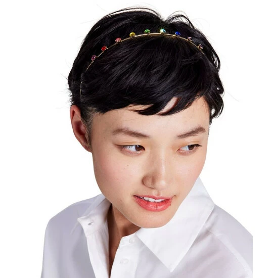 Rainbow crystals are stationed along a simple gold-tone band for a subtle rainbow halo effect on this Kate Spade New York headband.