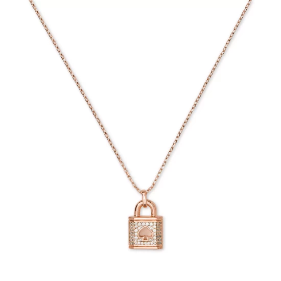 Kate Spade New York’s mini pendant necklace features the classic pavΓ© lock with signature spade design.