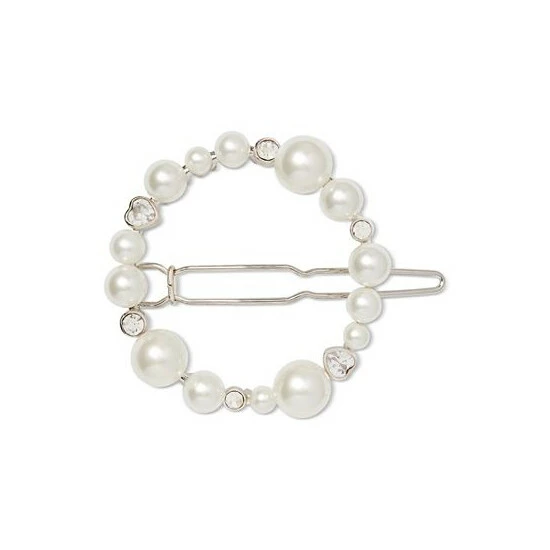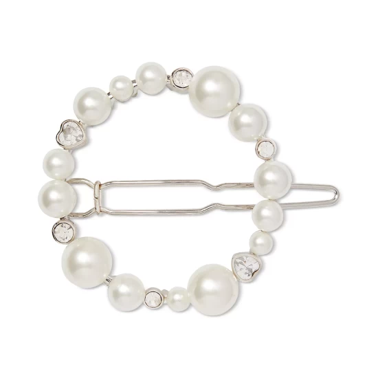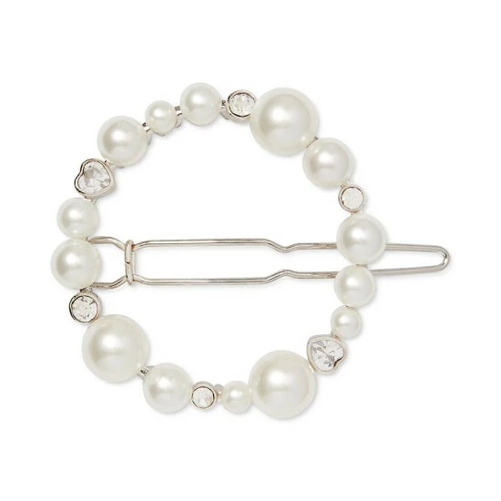 An open circle of elegance, this Kate Spade New York hair barrette boasts round and heart-shaped cubic zirconia mixed with luminous imitation pearls.