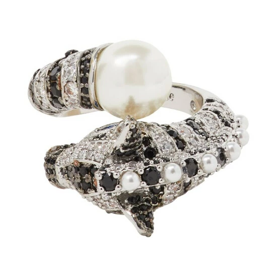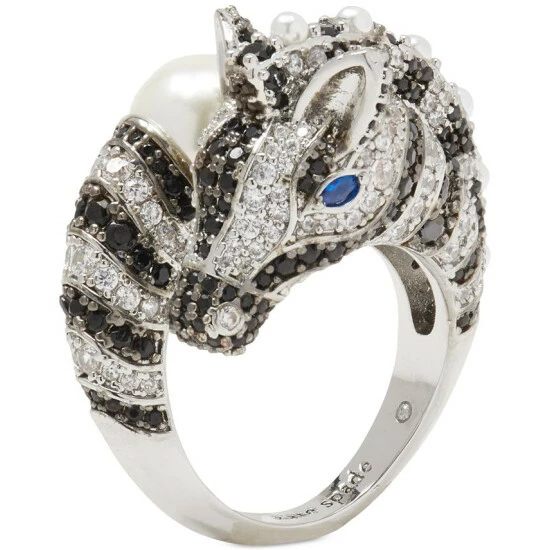 Earn your style stripes with the black-and-white crystals and imitation pearls of this zebra ring from Kate Spade New York.