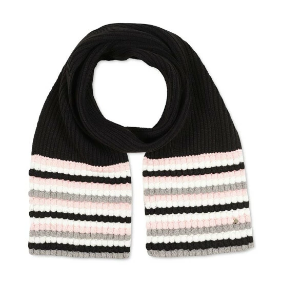 Super-chic striped crochet bobbles trim the edges of this cozy knit scarf by Kate Spade New York.