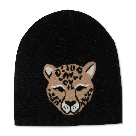 Add a little wide style to your cozy cold-weather look with Kate Spade New York’s merino wool leopard-face beanie.
