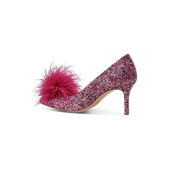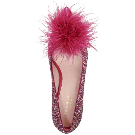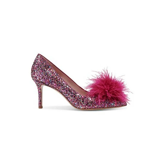 Fluffy feather pom poms combine with colorful glitter for a fun accent in the Marabou pumps from Kate Spade New York.