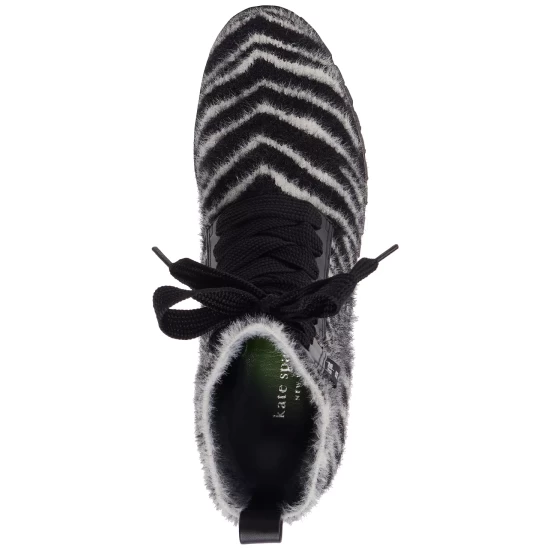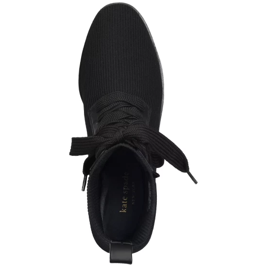 Kate Spade New York’s Merigue booties add sweet comfort to a bold combat look in stretchy knit uppers and flouncy laces.
