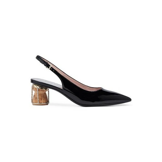 - Pointed-toe slip-on slingback pumps with adjustable buckle closure