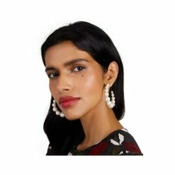 Flash Sale ๐ฅ Kate Spade New York Silver-Tone Imitation Pearl Hoop Earrings, 2.38 Cream/silv ๐